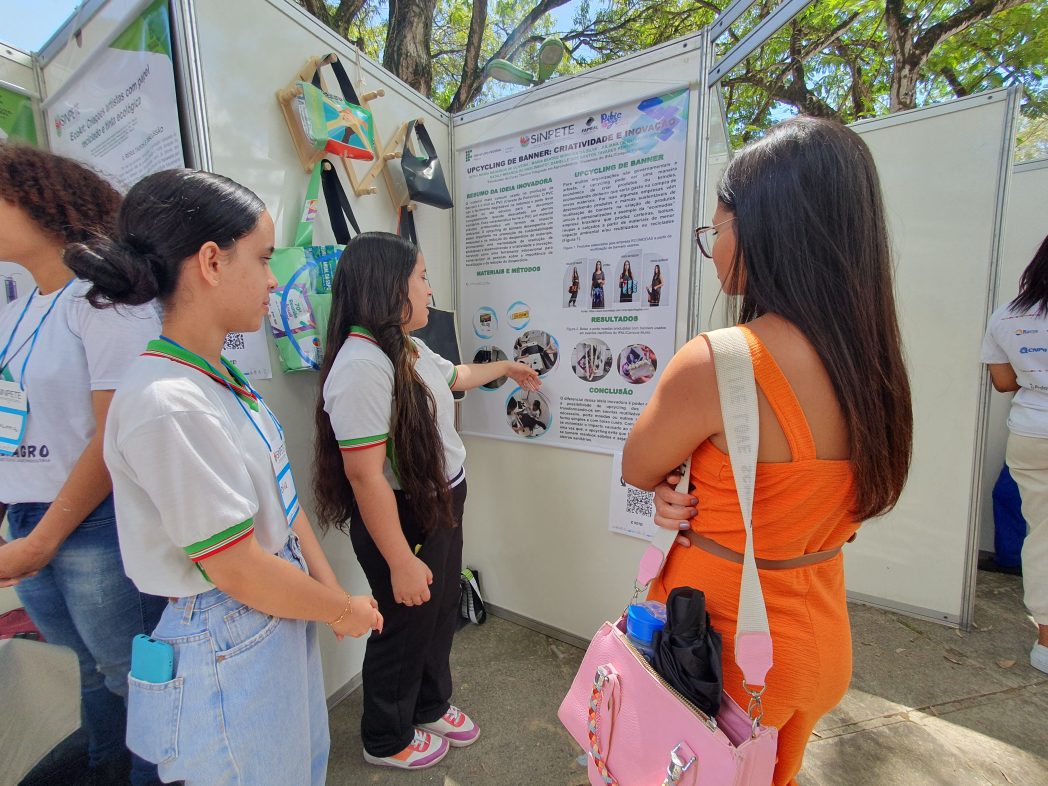 Ao lado dela, Hevily Chagas (16), do mesmo curso e período, que se mostrou tímida num primeiro momento, mas classificou o evento como um exercício de superação e aprendizado. “Esse projeto está fazendo com que eu consiga desenvolver a comunicação com outras pessoas, o que eu tinha muita dificuldade, pois ficava muito nervosa. E agora com a Sinpete esse impacto que eu tinha antes está sumindo por conta do contato que estou tendo e está sendo uma ótima oportunidade pra mim”, celebrou.