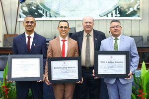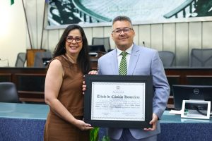 O diretor-presidente da Fundação de Amparo à Pesquisa do Estado (Fapeal), professor Fábio Guedes, recebeu o título de cidadão honorário de Alagoas, na manhã desta sexta (29), no plenário da Assembleia Legislativa (ALE). A homenagem foi proposta pelo deputado Ronaldo Medeiros e aprovada pelos parlamentares por unanimidade.