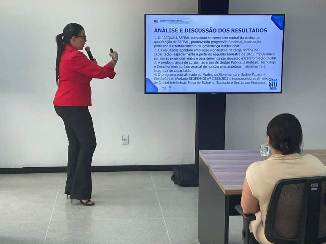 O Programa de Apoio à Capacitação e Qualificação do Servidor (PacQuali) da Fundação de Amparo à Pesquisa do Estado de Alagoas (Fapeal) e a Gestão da Informação no Setor Público: Interfaces entre normas estaduais e diretrizes federais foi outro trabalho apresentado no Siti 2025, assinado por Betânea Canuto, Beatriz Oliveira, Lília Aguiar, Luanna Melo e Teresa Trindade.