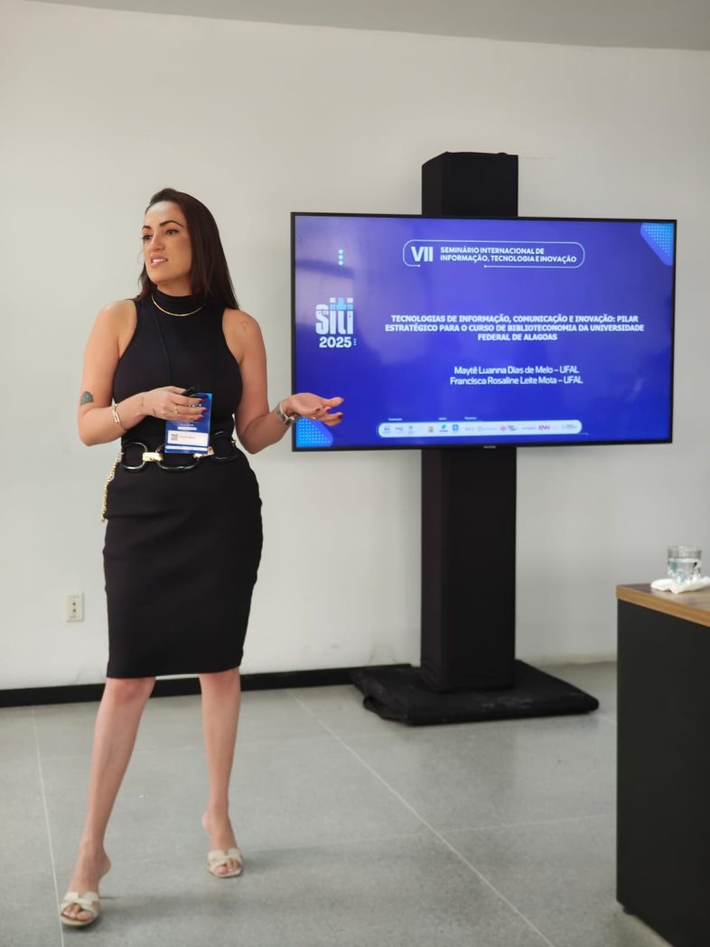 Outro trabalho apresentado foi Tecnologias da Informação, Comunicação e Inovação: Pilar Estratégico para o curso de Biblioteconomia da Universidade Federal de Alagoas (Ufal). “Abordamos as perspectivas futuras da entrada das Tecnologias de Informação, Comunicação e Inovação no currículo dos cursos de Biblioteconomia e numa outra perspectiva, nós apontamos os desafios frente a Inteligência Artificial também no âmbito da Ciência da Informação e da Biblioteconomia no Brasil”, explicou Luanna Melo, que assinou o trabalho ao lado da também docente Rosaline Mota, coordenadora do evento.