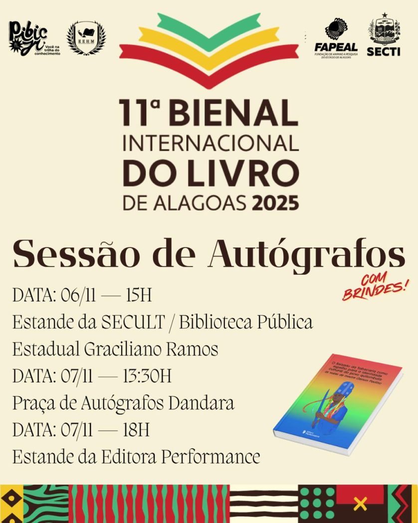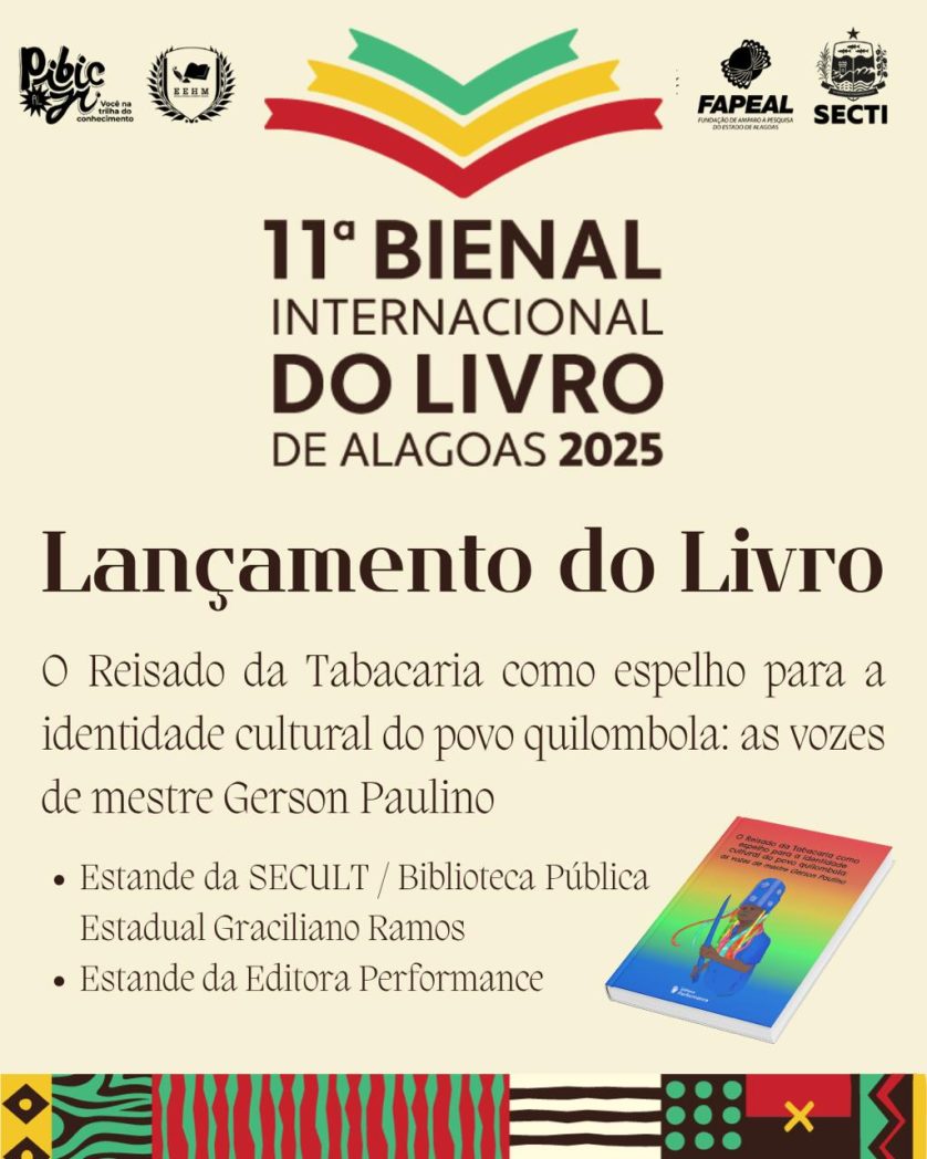 Um exemplo é Lara Barros, estudante da Escola Estadual Humberto Mendes, em Palmeira dos índios (AL). A jovem pesquisadora de artes visuais e culturas populares é autora do livro “O Reisado da Tabacaria como espelho para a identidade cultural do povo quilombola: as vozes de mestre Gerson Paulino”. Ela foi selecionada para expor a sua obra acadêmica-literária no estande da Secretaria de Estado da Cultura/Biblioteca Estadual Graciliano Ramos. A obra também vai compor parte do acervo do estande da Editora Performance.