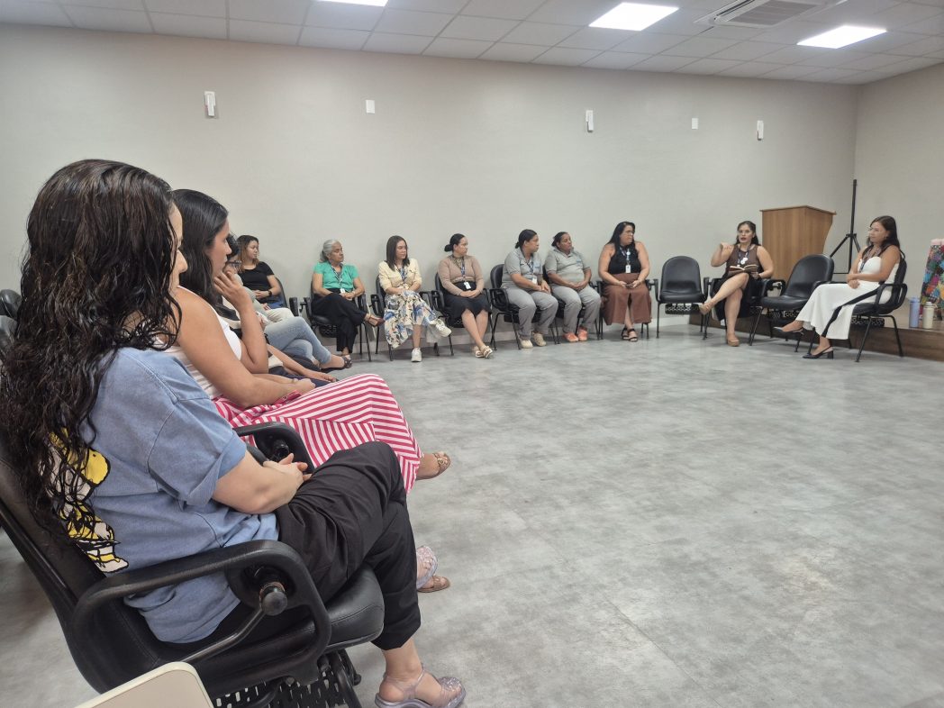 A abertura da manhã foi conduzida pela gerente da GEVP, Lilia Aguiar, que destacou o sentido do encontro como um espaço de pausa e escuta coletiva. Em sua fala, ela ressaltou que a vida das mulheres costuma ser marcada por diversas lutas e desafios, mas que é importante também buscar caminhos para viver essas experiências com mais cuidado consigo mesmas e com mais leveza no cotidiano.